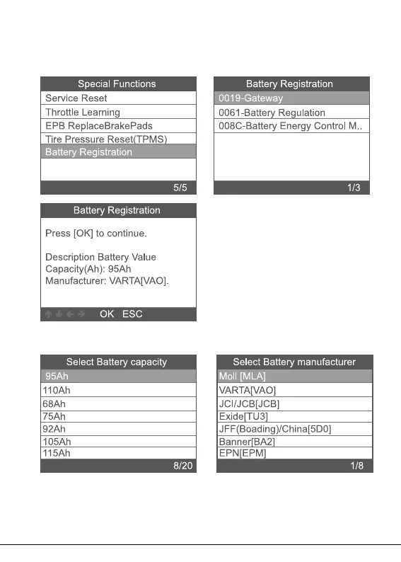 Valige samm-sammult funktsioon [Battery Registration] (aku registreerimine), misjärel