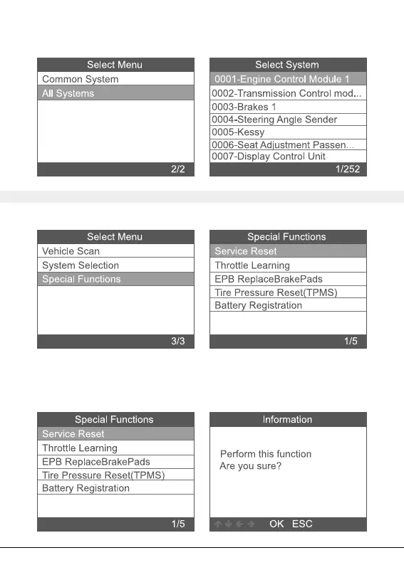 Valitse Huollon resetointi “Service reset” ja saat seuraavan näkymän ja voit valita mikä