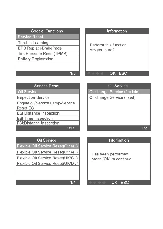 Soli pa solim izvēlieties funkciju [Servisa atiestatīšana] (Service Reset), un tā