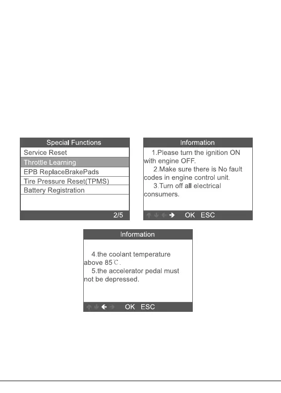 Soli pa solim izvēlieties funkciju [Droseles noteikšana] (Throttle Learning),