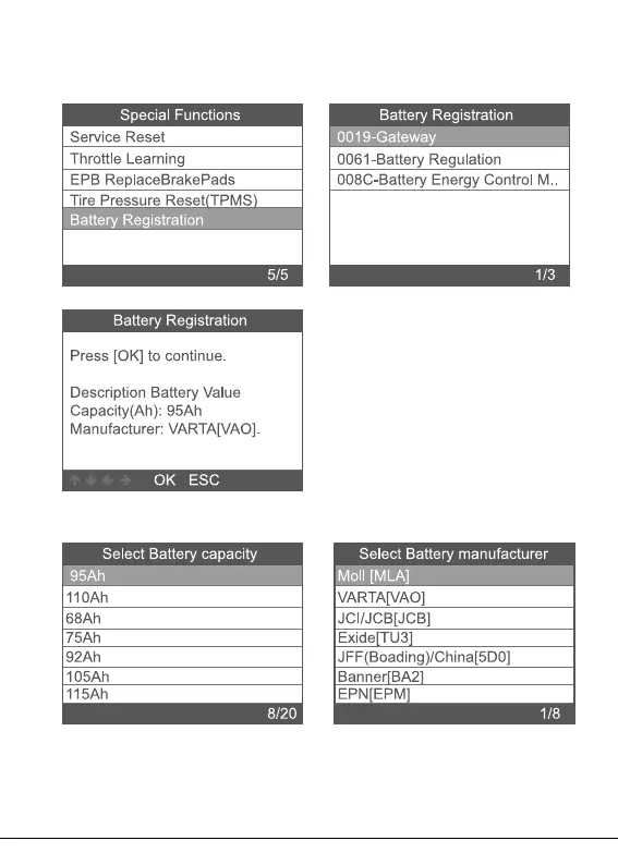 Soli pa solim izvēlieties funkciju [Akumulatora reģistrēšana] (Battery Registration),