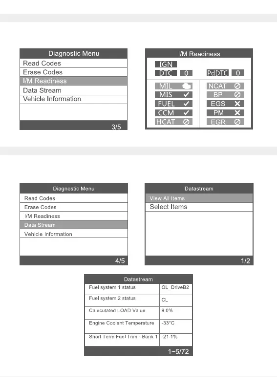 Izmantojiet ritināšanas pogas UP/DOWN, lai diagnostikas izvēlnē atlasītu “Datu plūsma”,