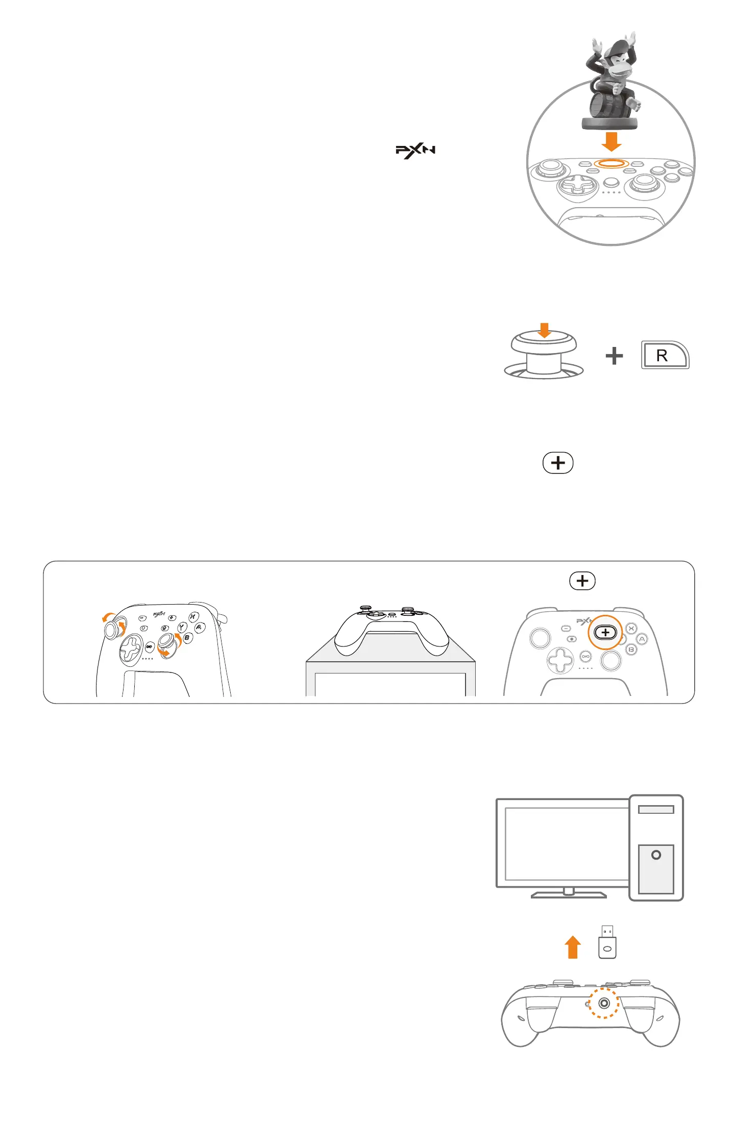Rotate the 2 joysticks for 2~3 times Place the handle horizontally Press [ ] button