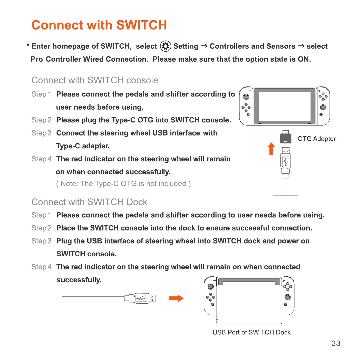 Step 3 Plug the USB interface of steering wheel into SWITCH dock and power on