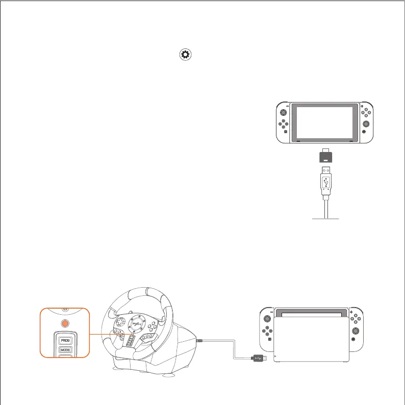Step 2 Plug the USB of Racing Wheel into Switch dock and power on Switch