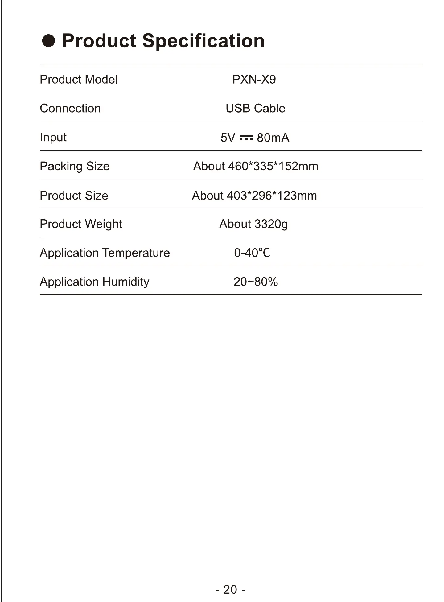 PXN X9 - Product Specification