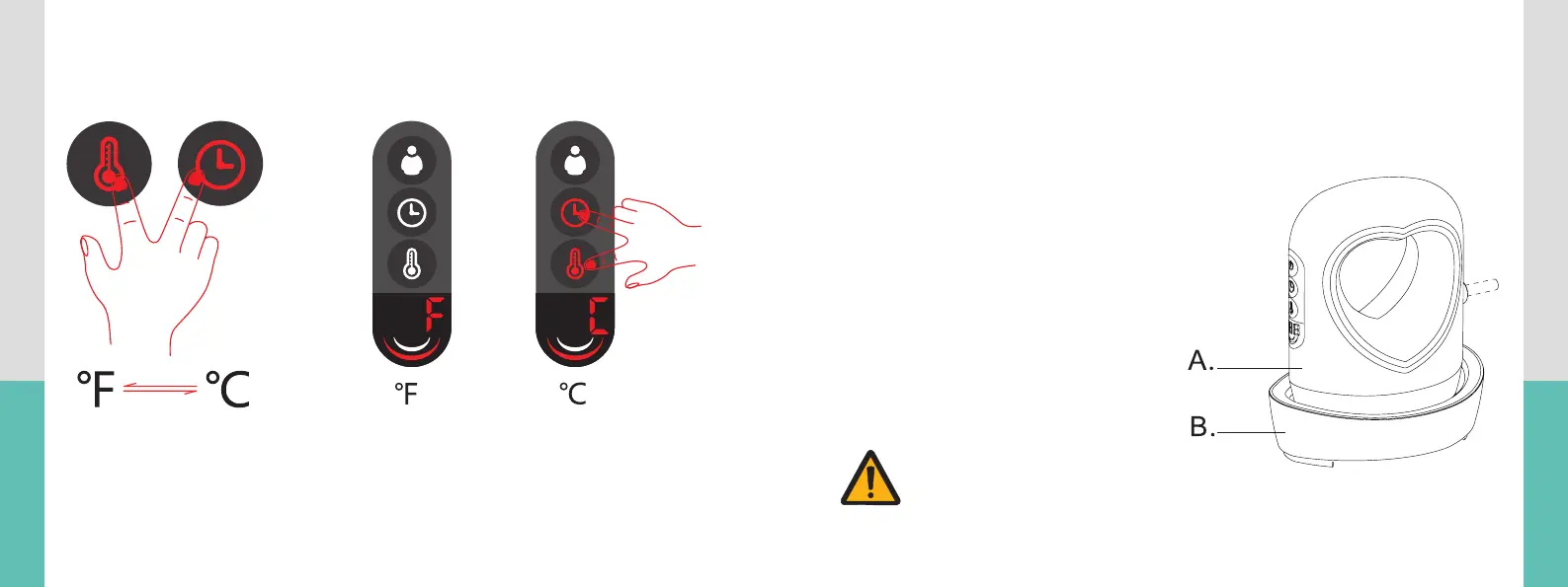 2. Long press the time and the temp. buttons together for 3 seconds to switch between