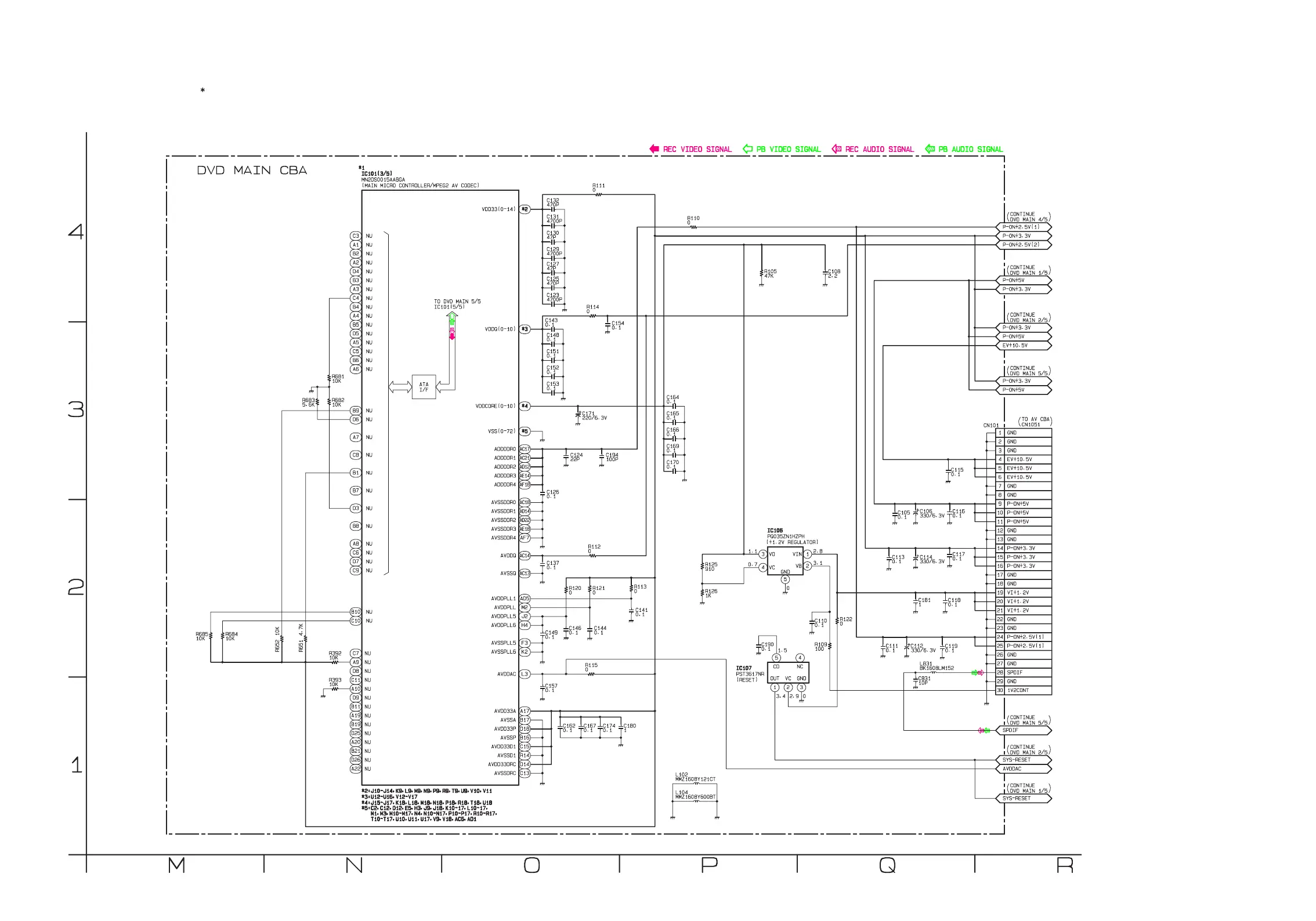 IC101 is divided into five and shown as IC101 (1/5) ~ IC101 (5/5) in this DVD Main Schematic Diagram Section.