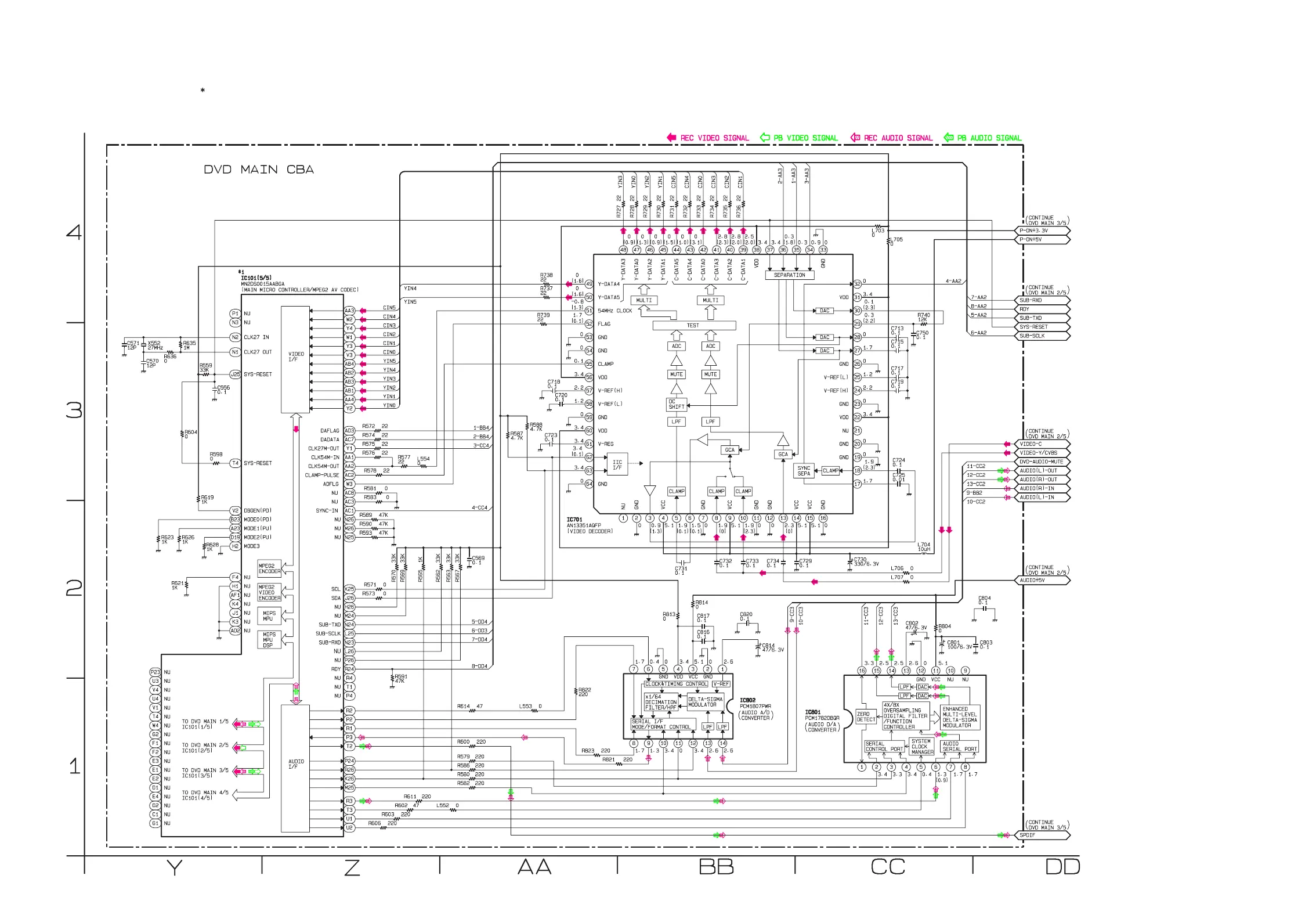 IC101 is divided into five and shown as IC101 (1/5) ~ IC101 (5/5) in this DVD Main Schematic Diagram Section.