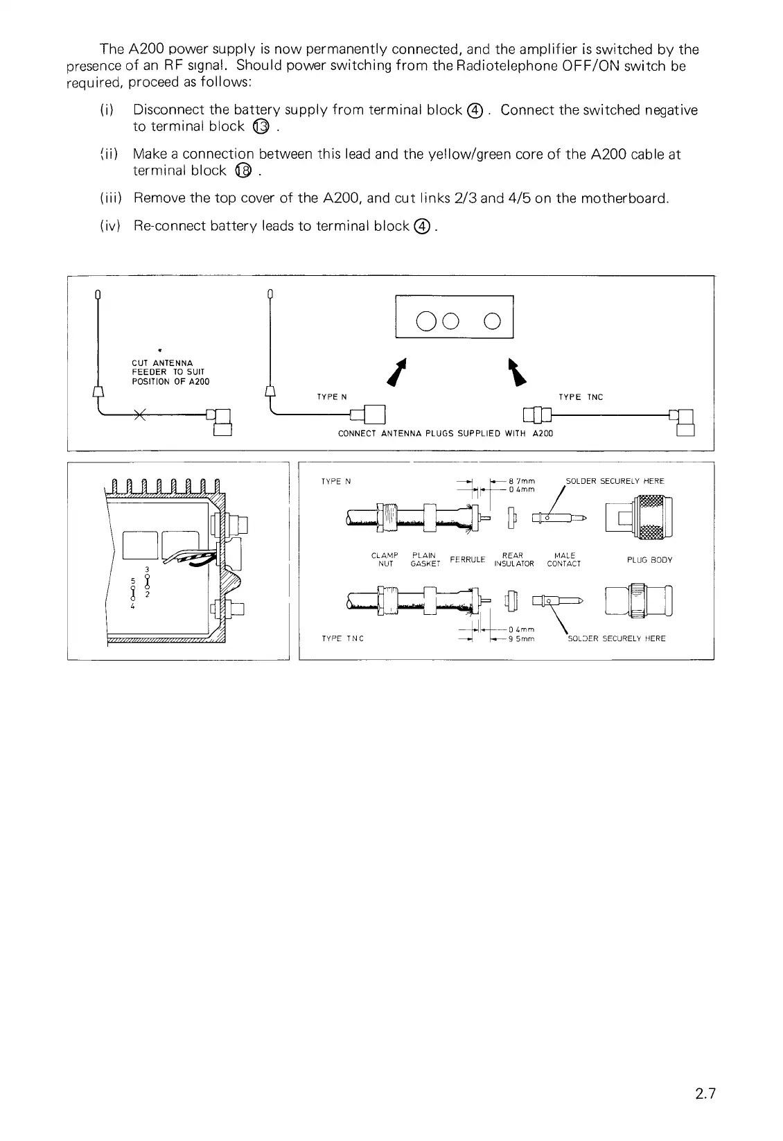 The A200 power supply is now permanently connected, and the amplifier is switched by the