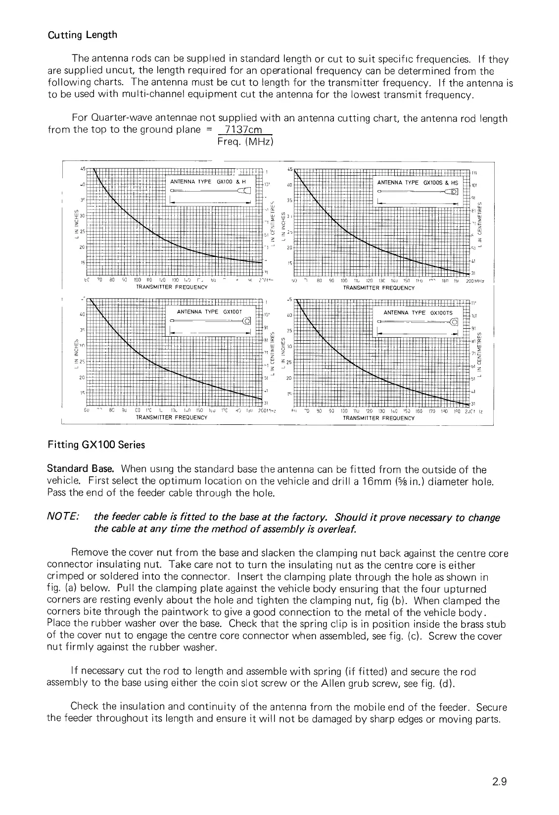 following charts. The antenna must be cut to length for the transmitter frequency. If the antenna is