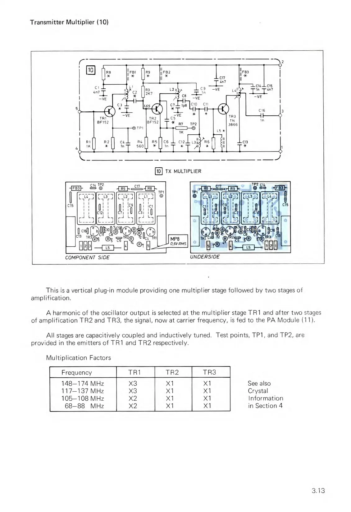 A harmonic of the oscillator output is selected at the multiplier stage TR1 and after two stages
