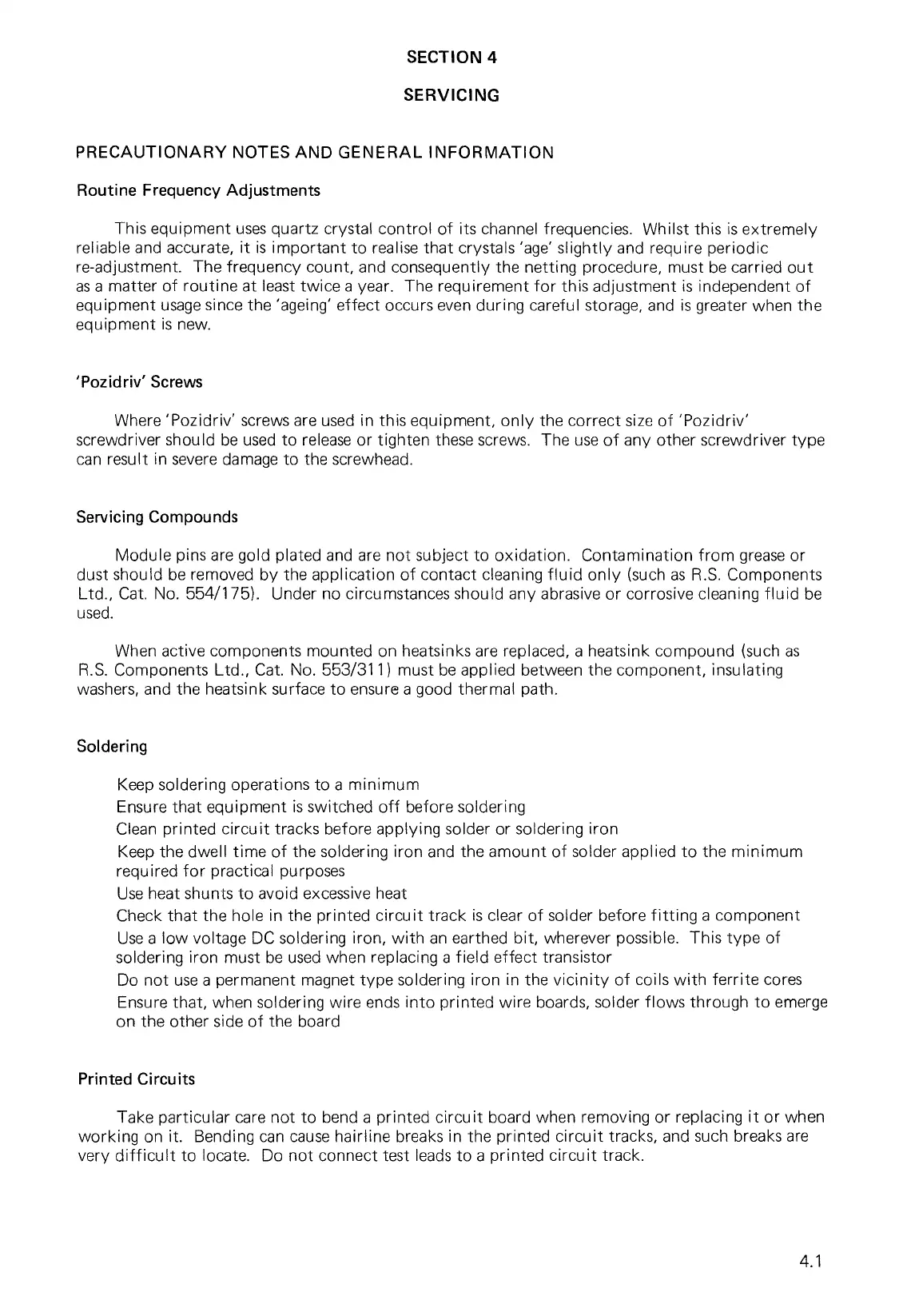 Where 'Pozidriv' screws are used in this equipment, only the correct size of 'Pozidriv'