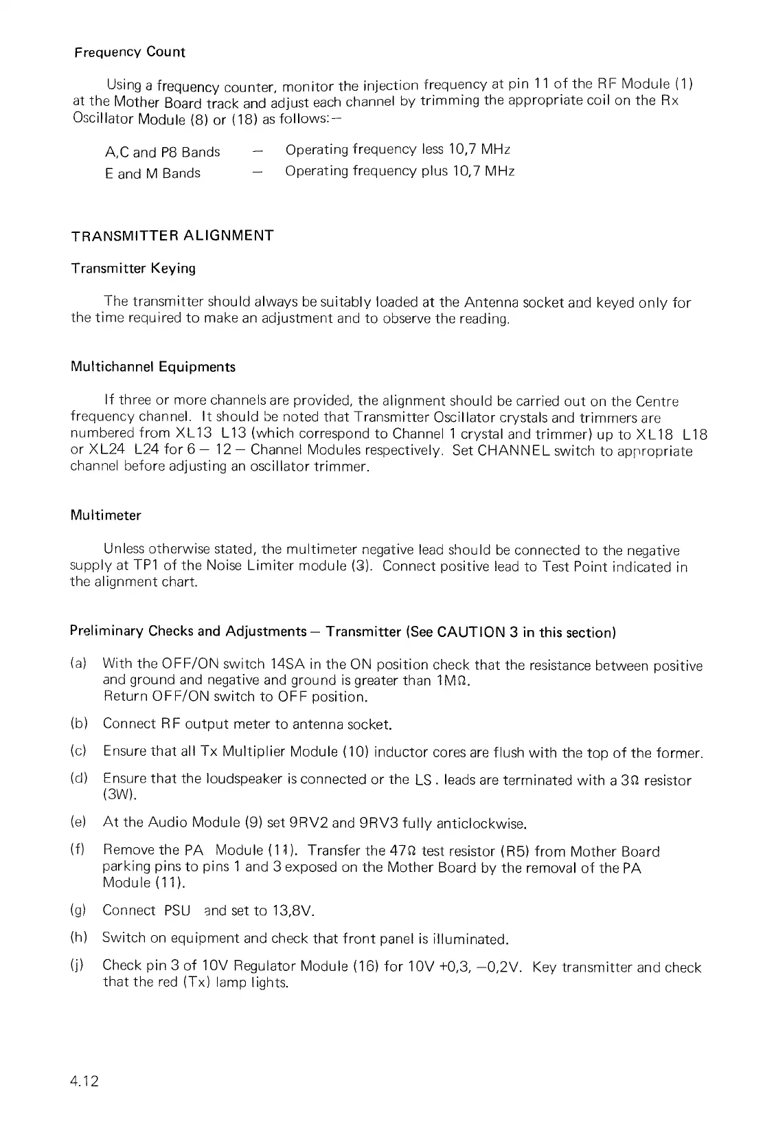 frequency channel. It should be noted that Transmitter Oscillator crystals and trimmers are