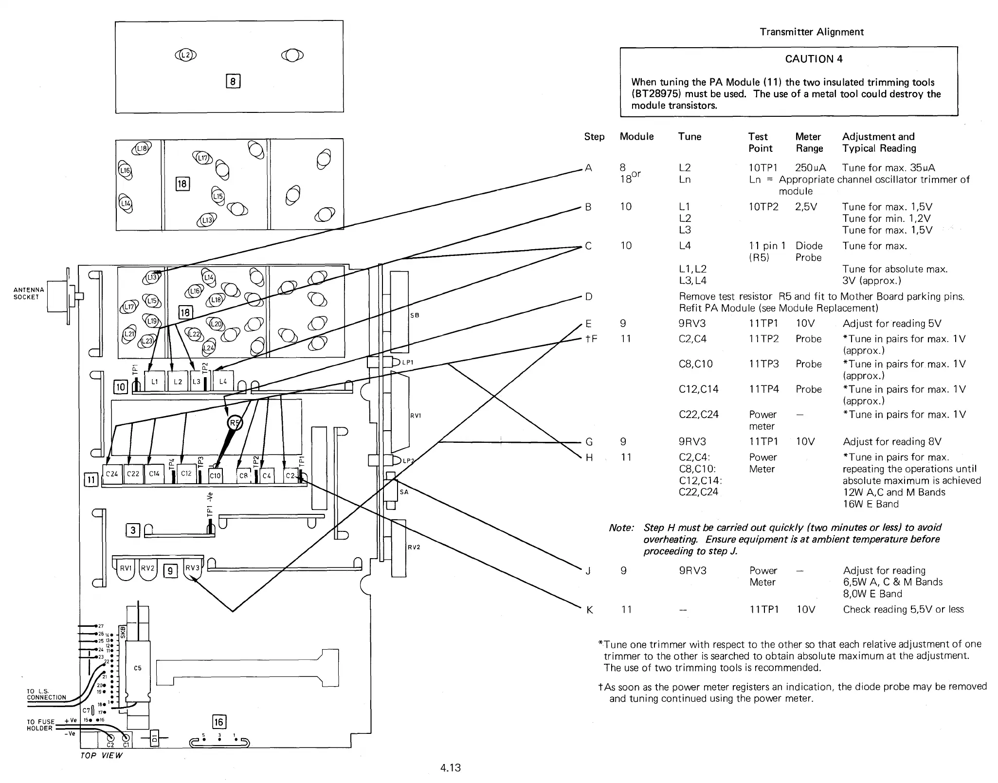 When tuning the PA Module (11) the two insulated trimming tools