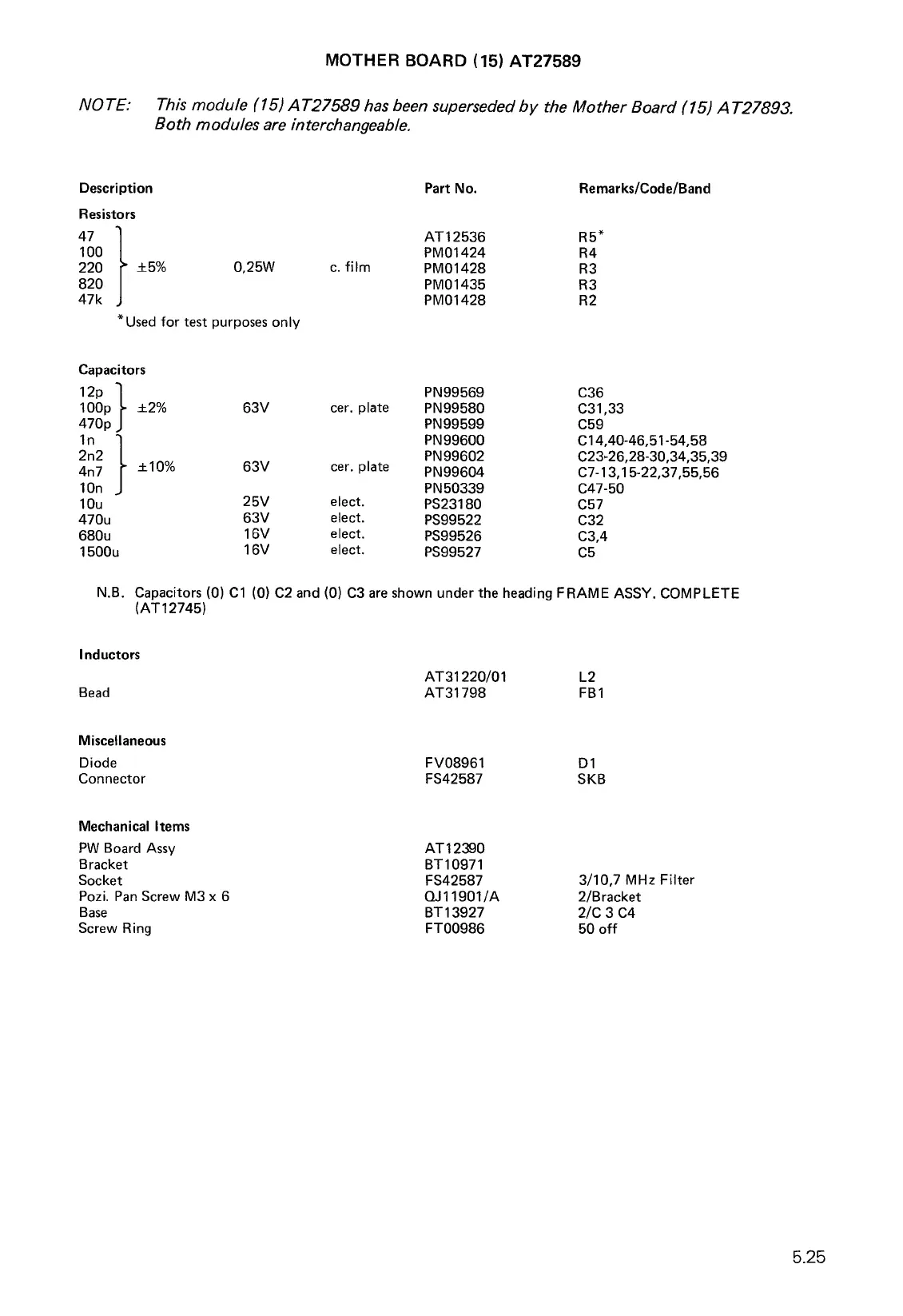 NOTE: This module (15) AT27589 has been superseded by the Mother Board (15) AT27893.