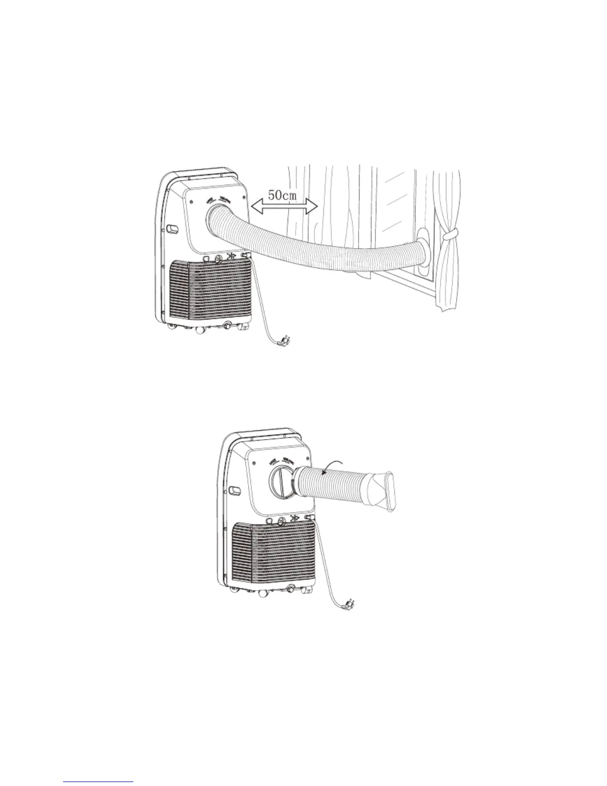 Screw the exhaust pipe assembly into the air outlet in the back panel (anticlockwise).