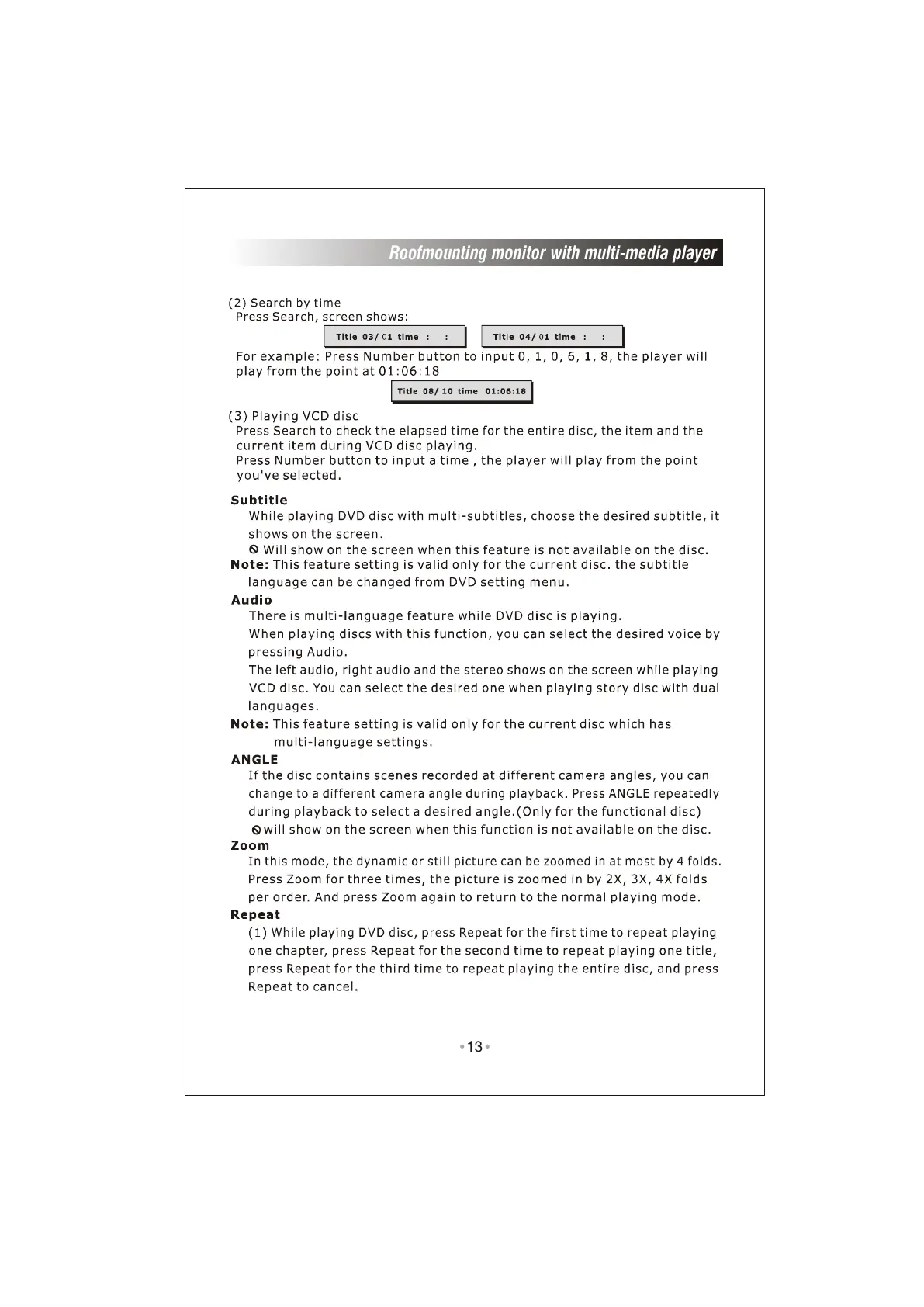Roofmounting monitor with multi-media player