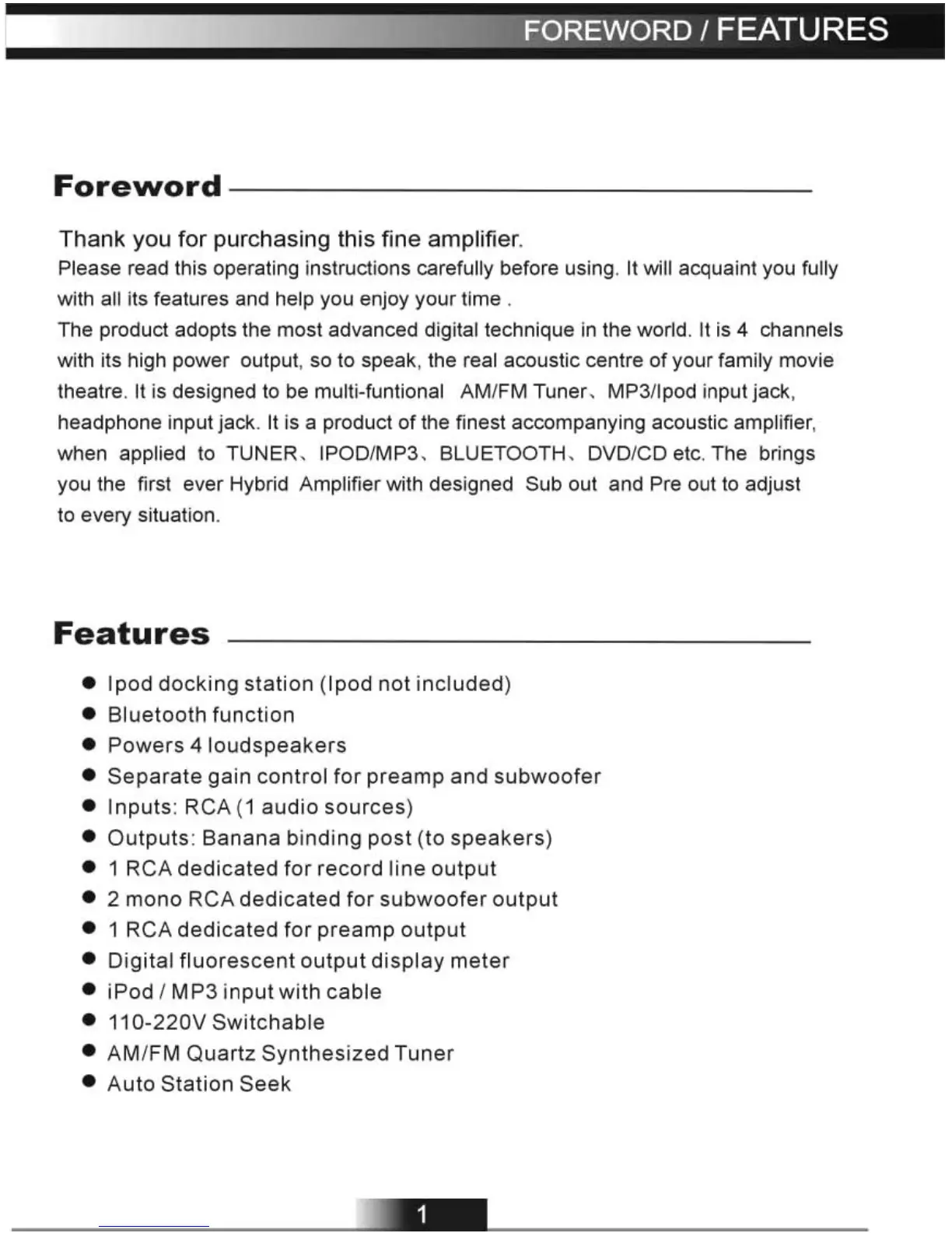 multi-funtional AM/FM Tuner, MP3/1pod input jack,