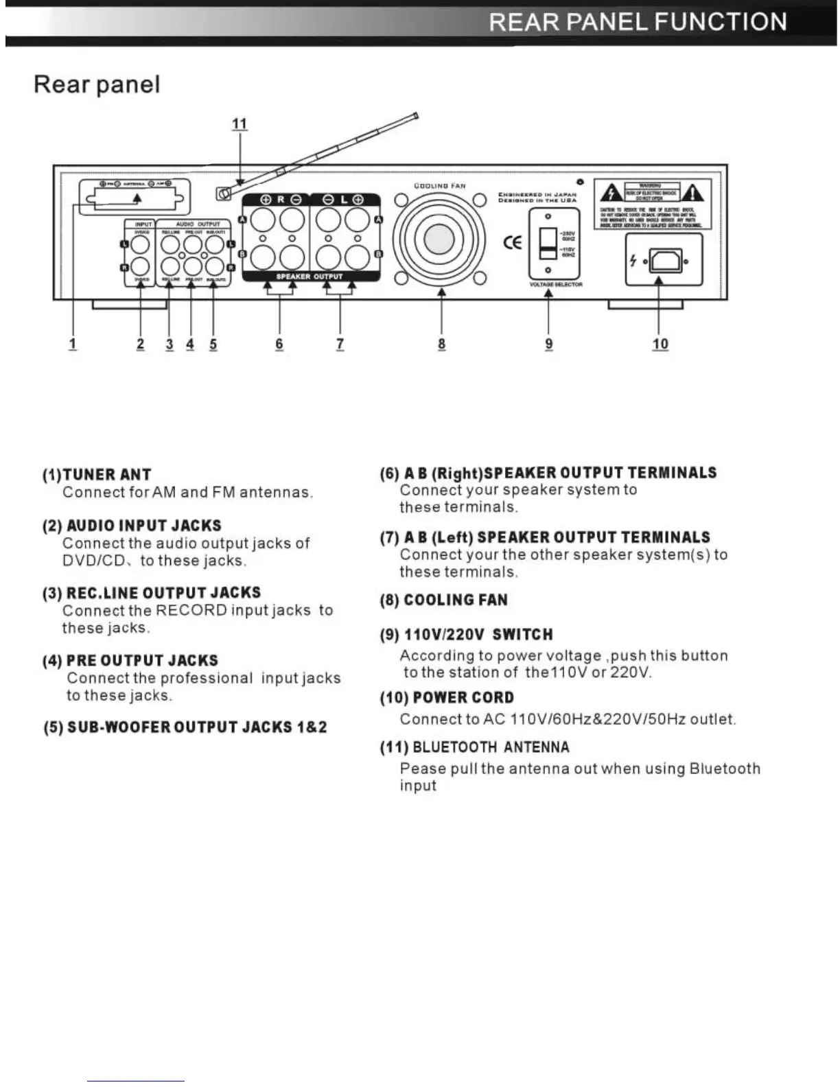 Pyle Pro P2002ABTI - Rear Panel Function; Rear Panel Connectivity and Power