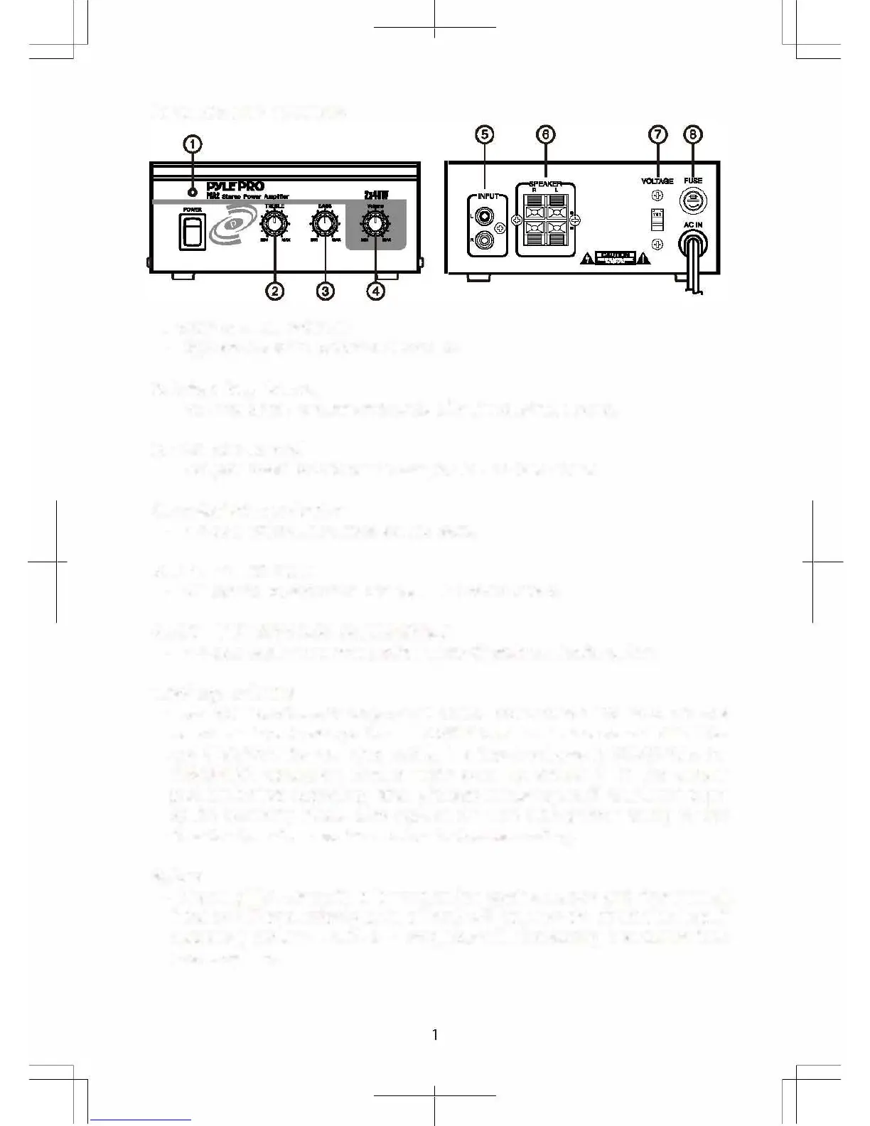 Pyle Pro PCA2 - Features and Controls; Power ON LED Indicator; Treble Tone Control; Bass Tone Control