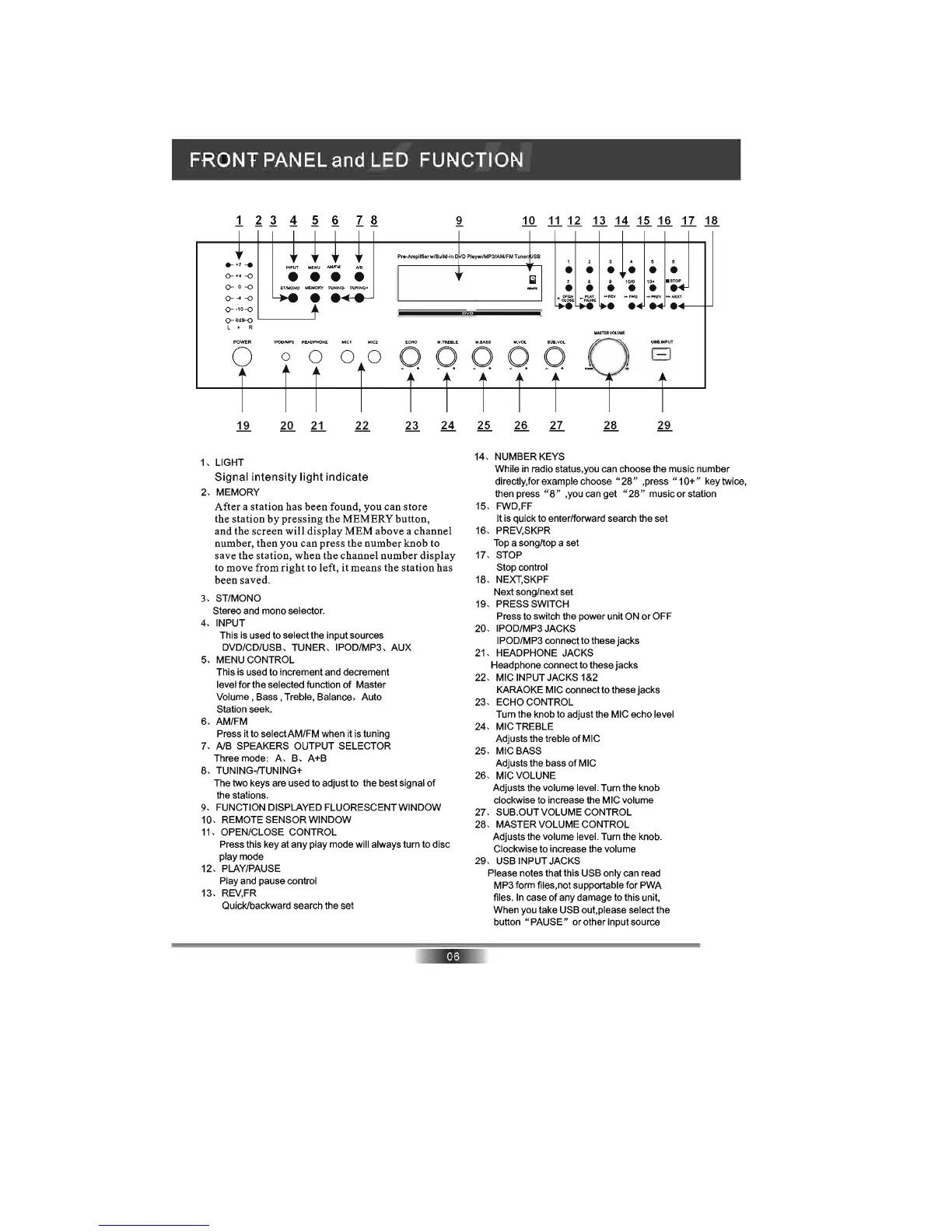 DVD/CD/USB, TUNER, IPOD/MP3,