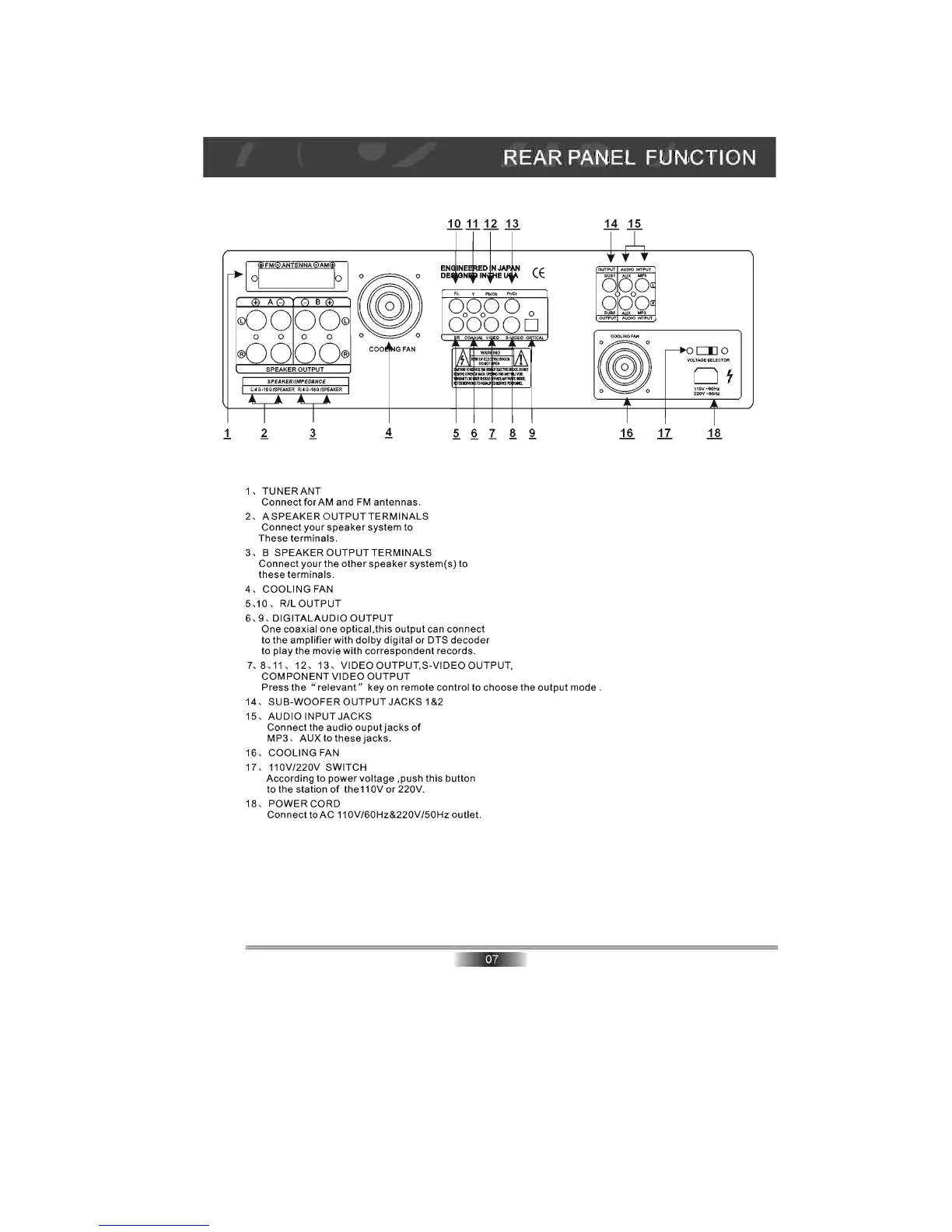 Pyle Pro PD1000A - Rear Panel Connectivity; Rear Panel Connections and Ports