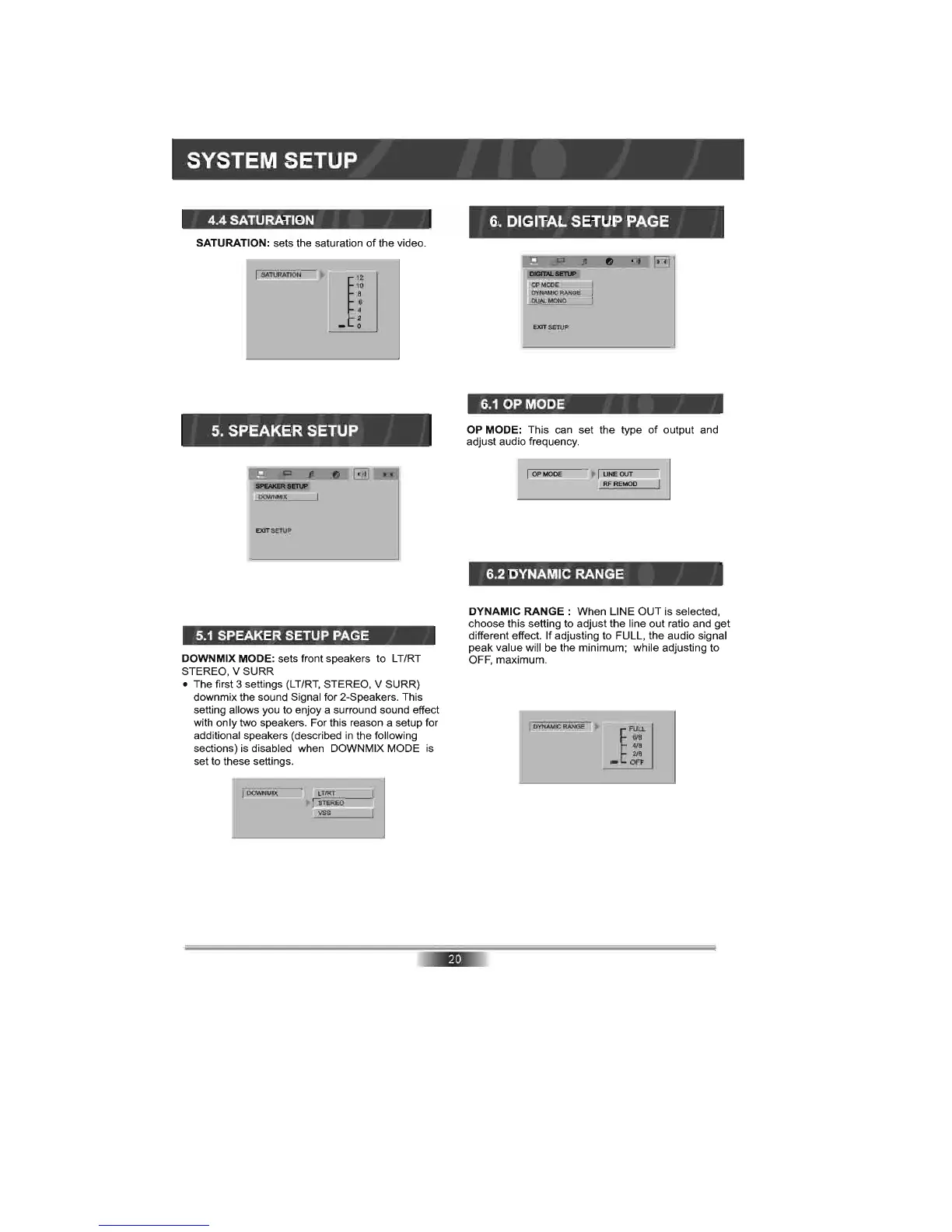 Pyle Pro PD3000A - System Setup Options Continued; Video Saturation and Speaker Settings; Digital Setup Options