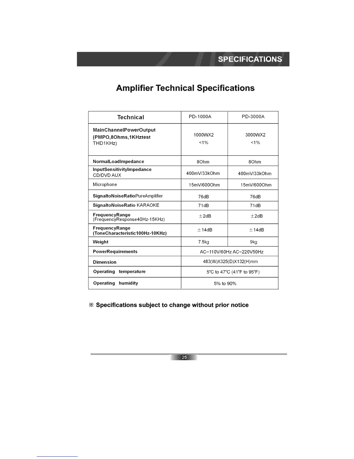 Pyle Pro PD3000A - Product Specifications Continued; Amplifier Technical Specifications