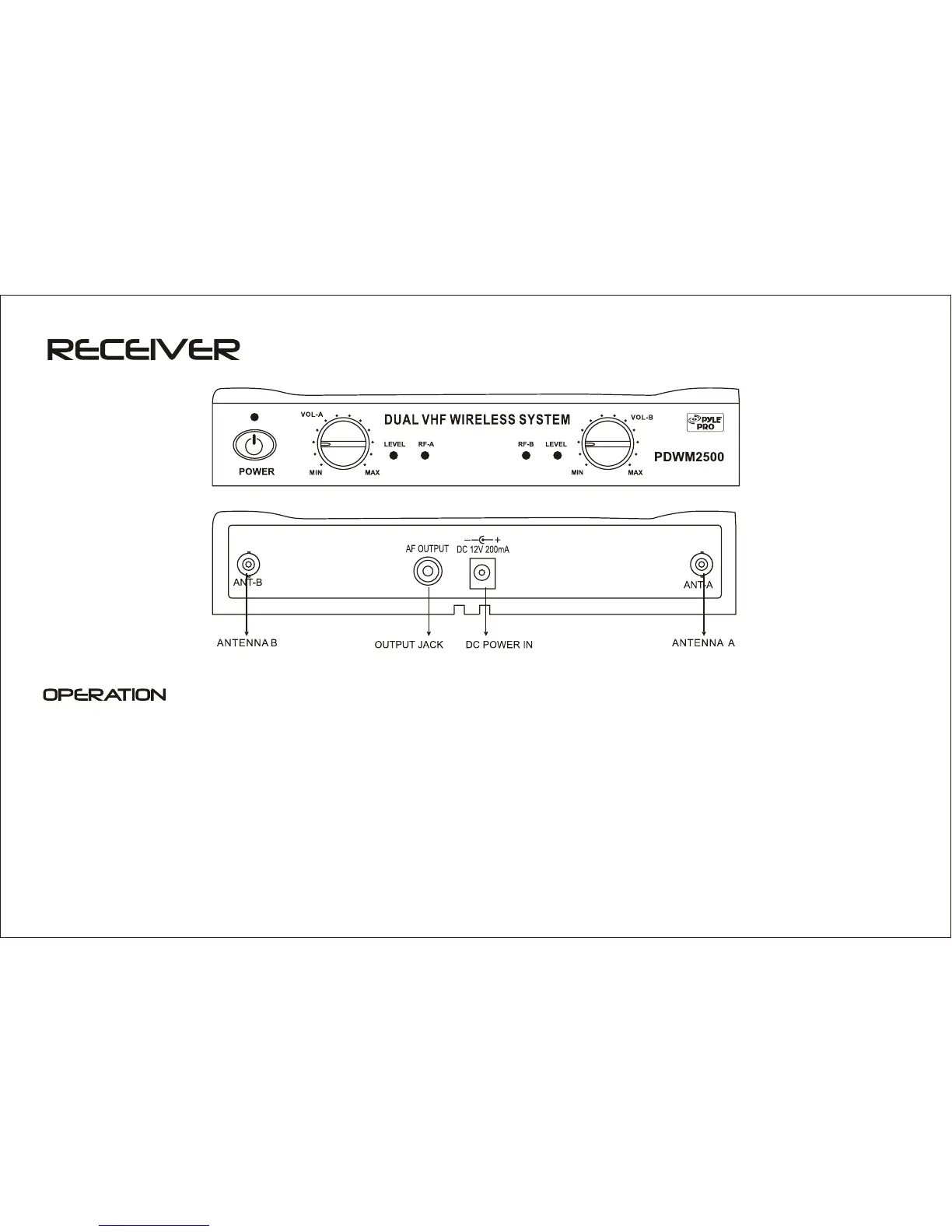 5.Switch on the microphone. The "RF" indicator on receiver comes on green. The "LEVEL"