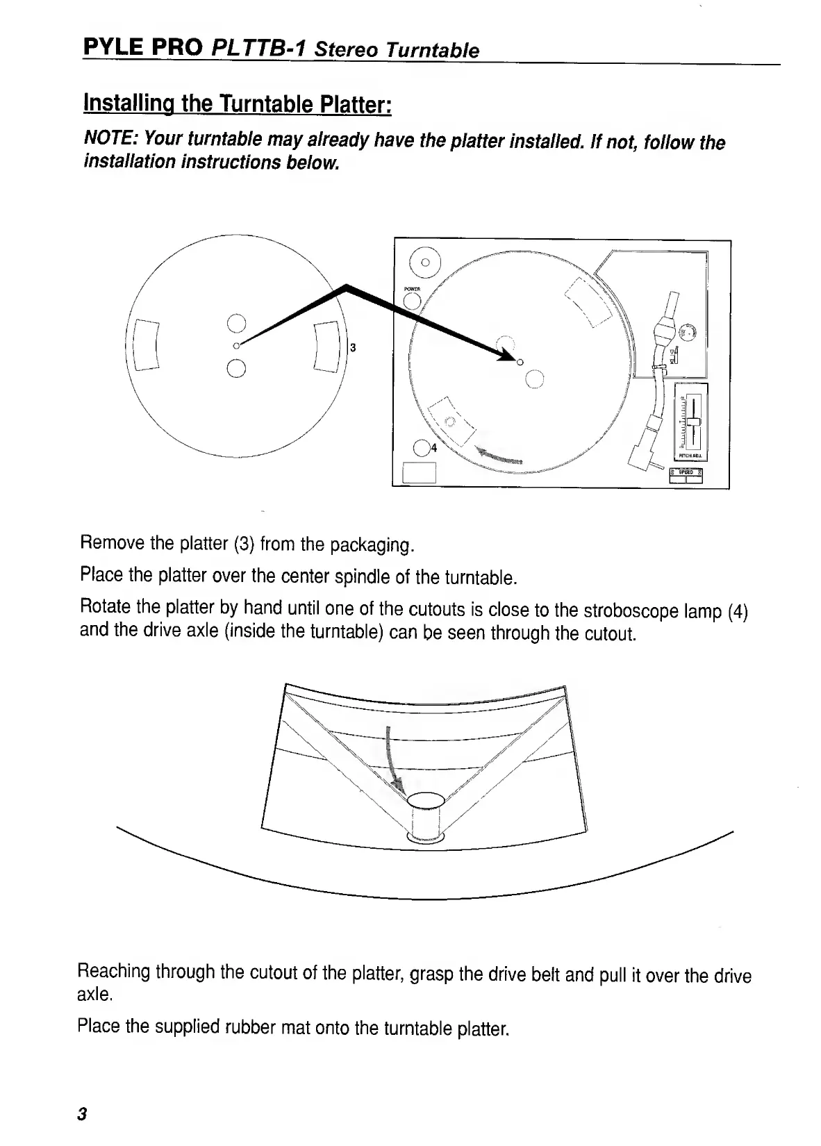 Pyle Pro PLTTB-1 - Installation Guide; Installing the Turntable Platter