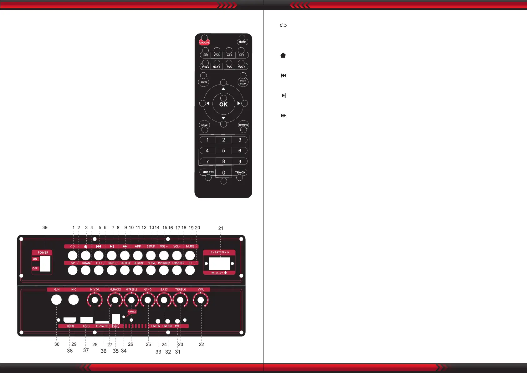 10. VOL +: Increase volume
