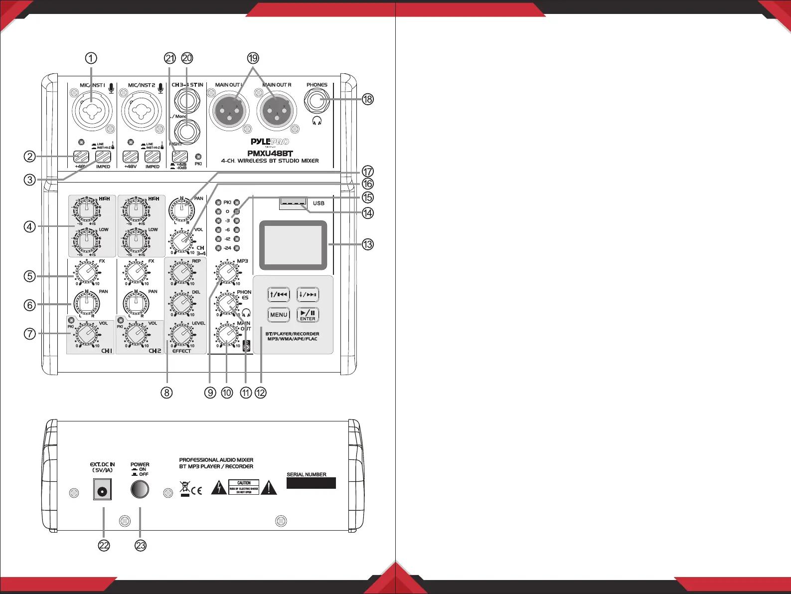 4. Mic input CH 2 band EQ: This is a high quality, sensitive, 2 segment equalizer