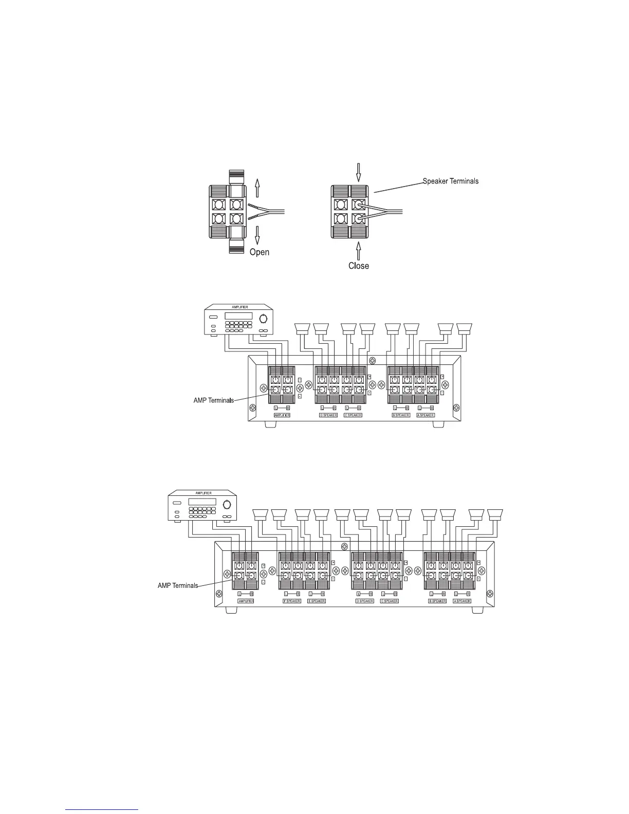 PressopenthedesiredSPKterminalsonthecontrolcenter.Insertthespeakers’positive