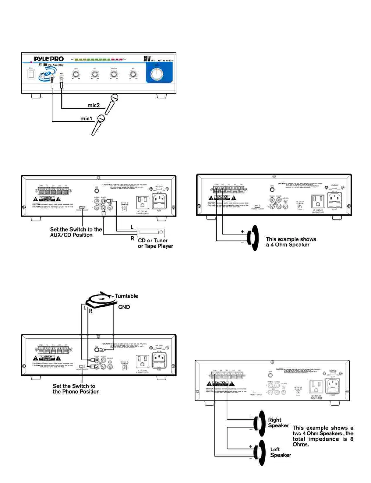 speaker (+) terminal to the amplifier's 4-Ohm, 8-