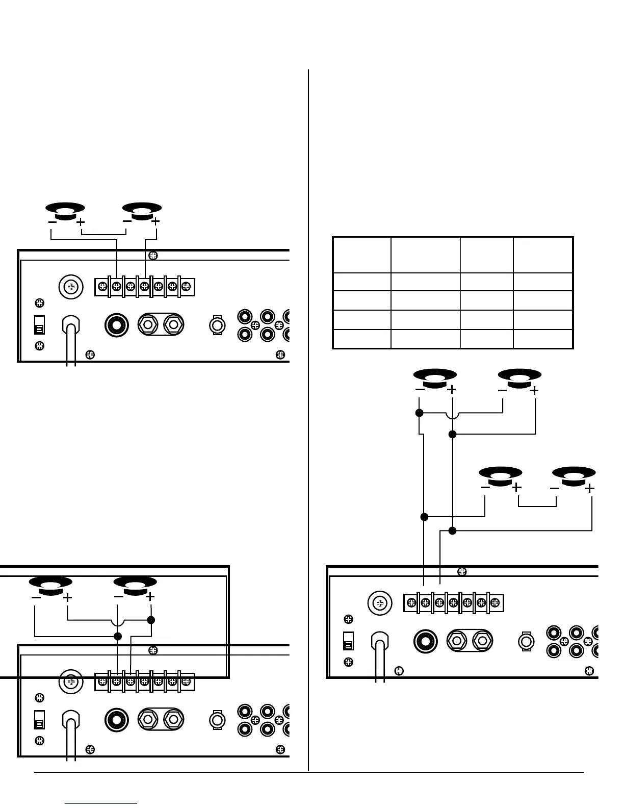 5. Connect the speakers’ (+) terminals to amplifier’s 4 Ohm,