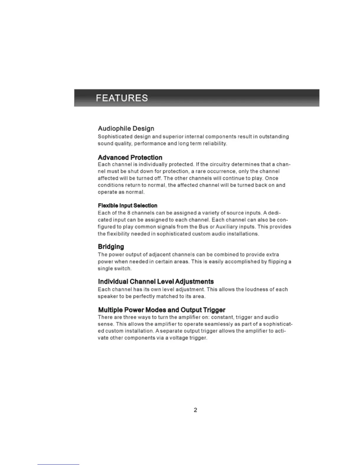 Pyle Pro PT8000CH - Features; Advanced Protection; Flexible Input Selection; Bridging