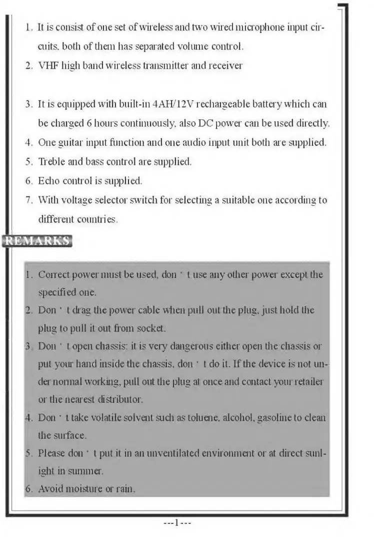 Pyle Pro PWMA-230 - System Features; Key System Features; Safety and Handling Precautions; Important Remarks
