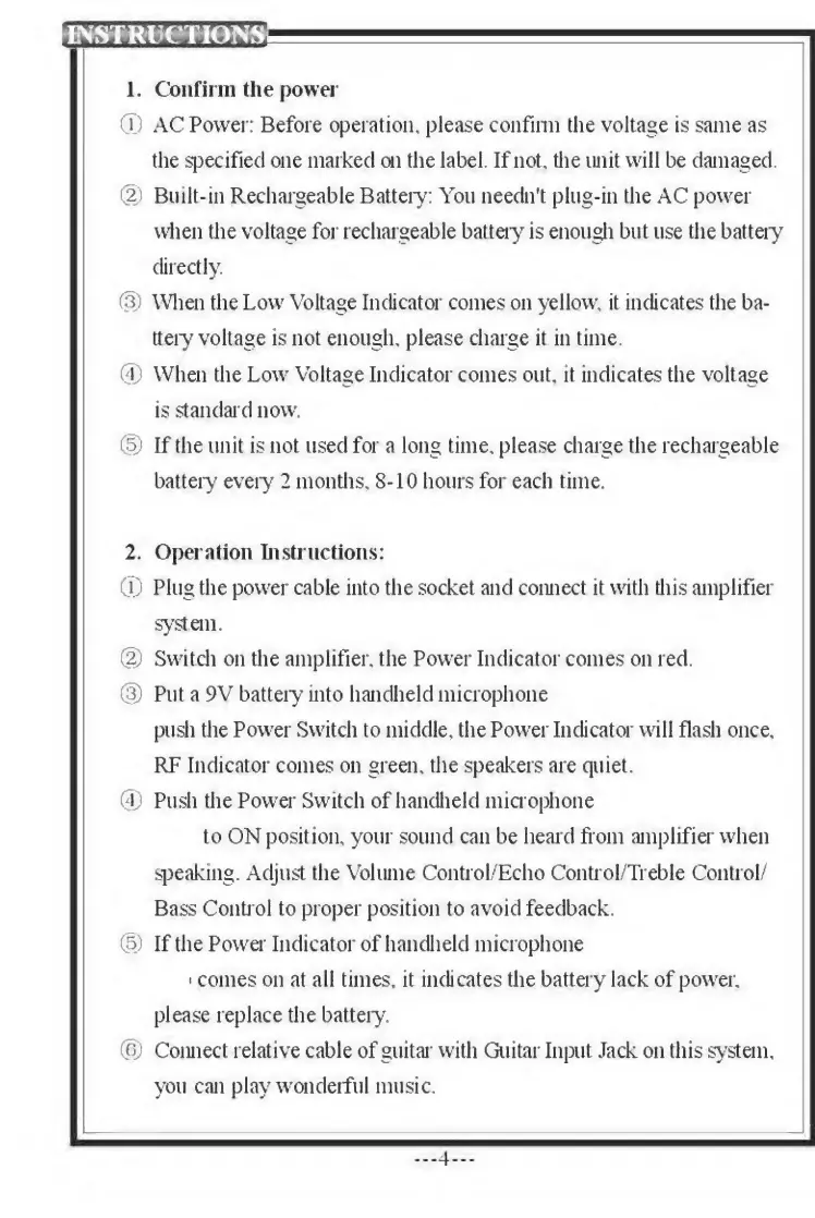 Pyle Pro PWMA-230 - Operating Instructions; Confirm Power and Battery Status; Basic Operation Guide