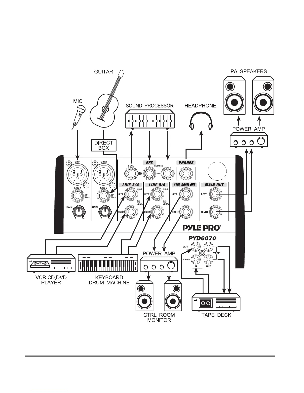 Pyle Pro PYD1270 - PYD6070 Mixer Installation Diagram