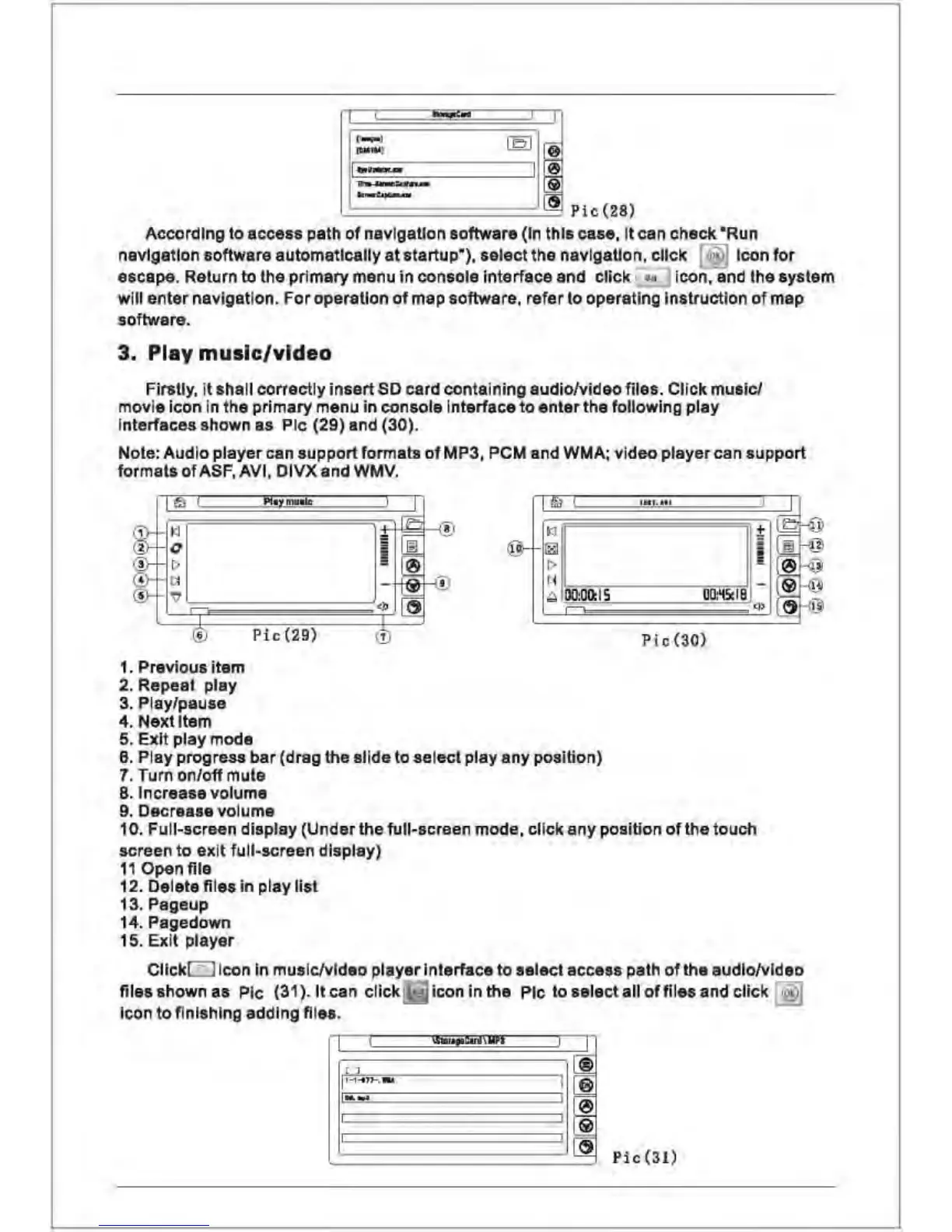 Pyle view PLDN73I - Music and Video Playback; Navigation Software Access; Audio;Video Playback Interface; Music;Video Playback Controls