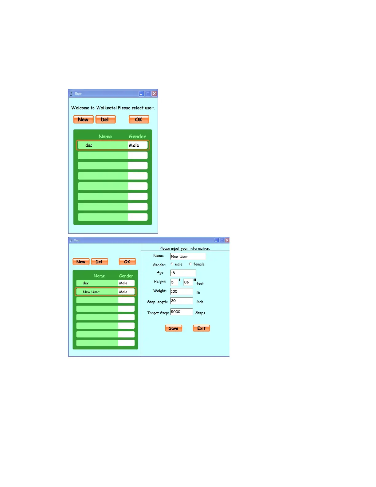 1. Click New button to create a new USER NAME and enter your