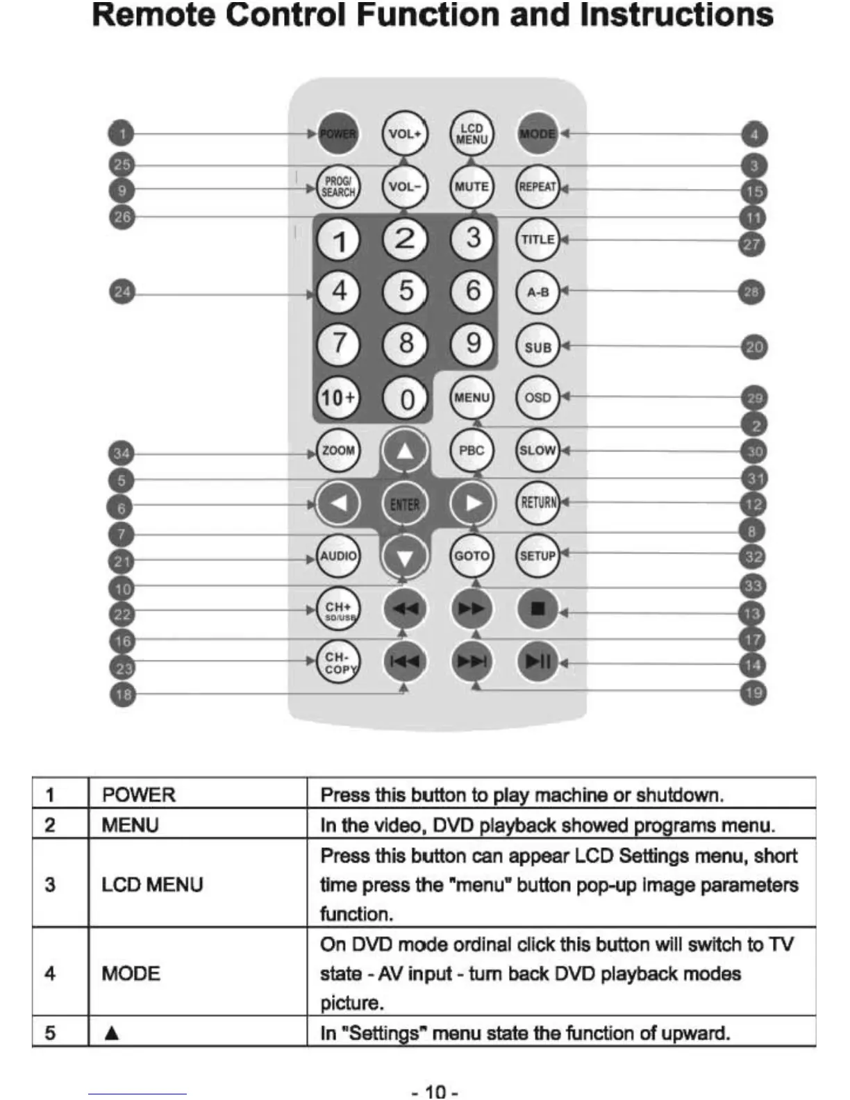 4 MODE state - AV input - tum back DVD playback modes