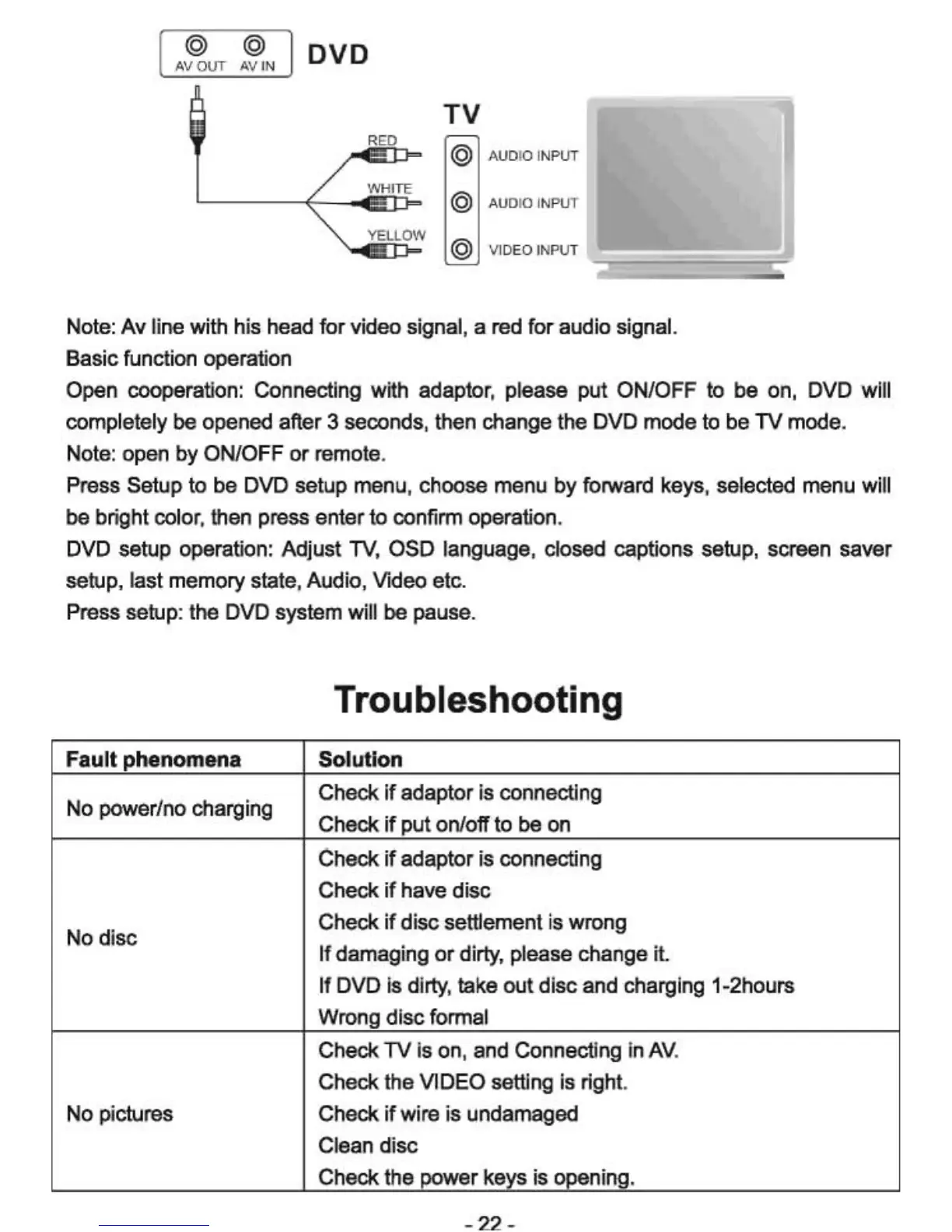 Open cooperation: Connecting with adaptor, please put ON/OFF to be on, DVD will