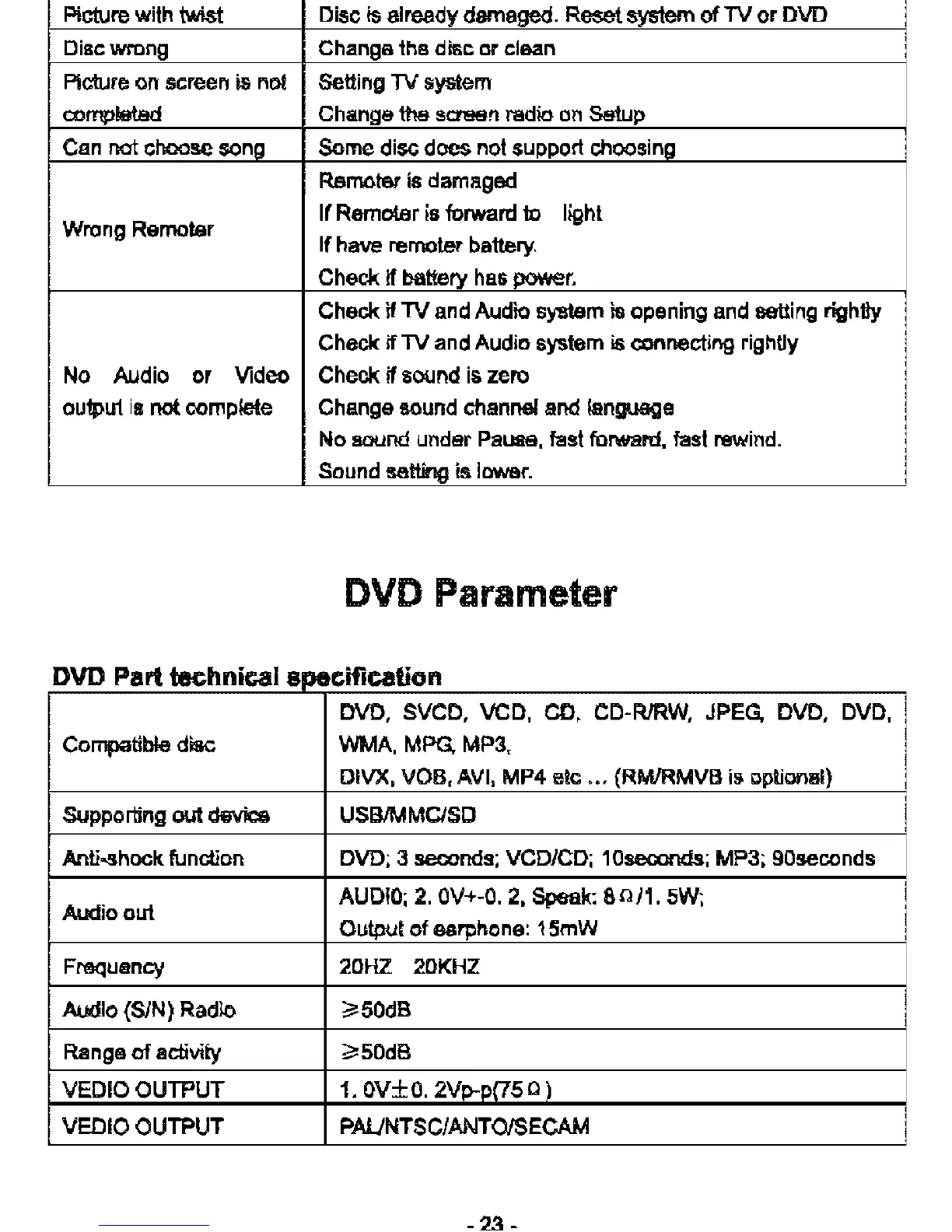 DVD Parameter