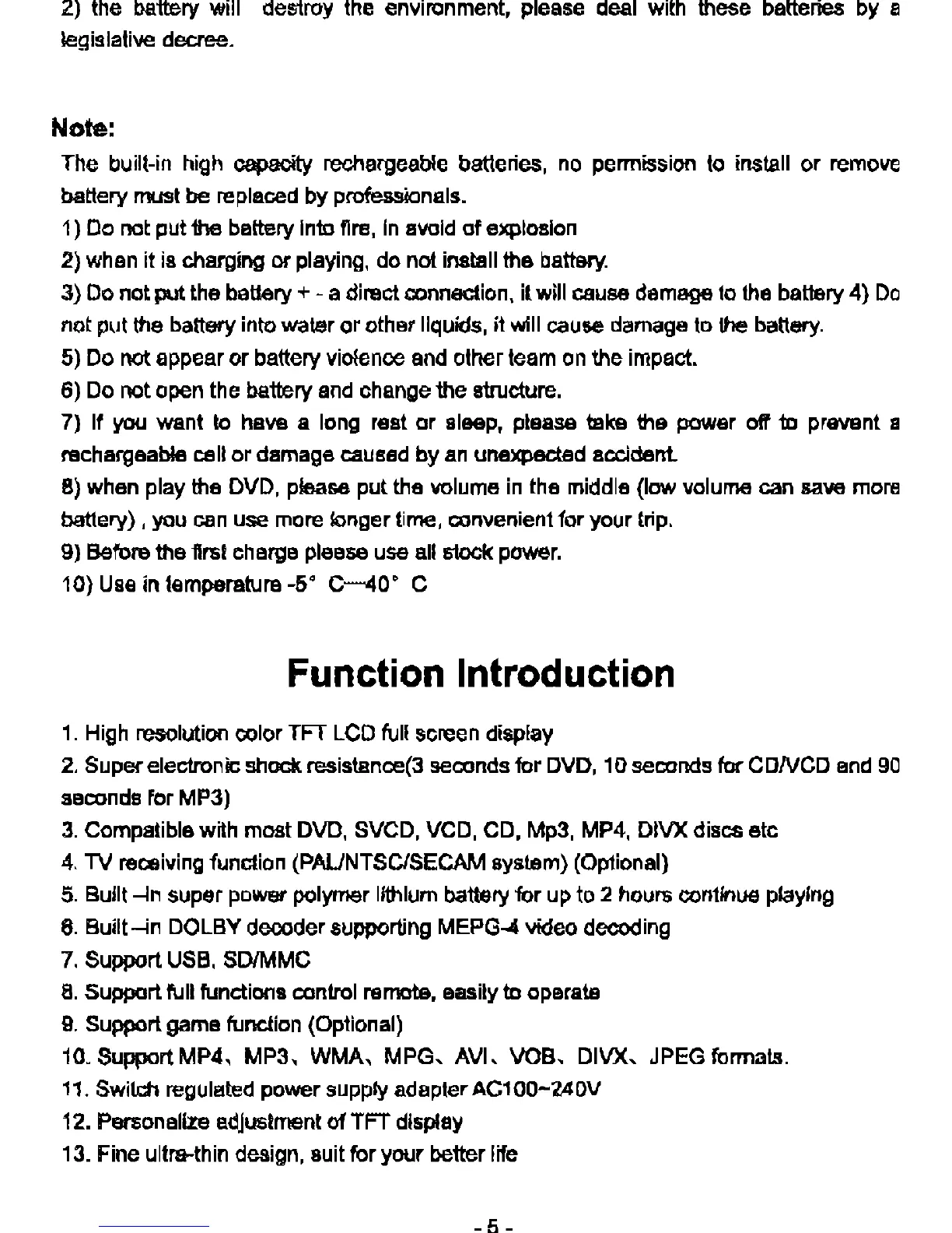 Compatible with most DVO, SVCO, VCD, CD, Mp3, MP4, OIVX discs ete