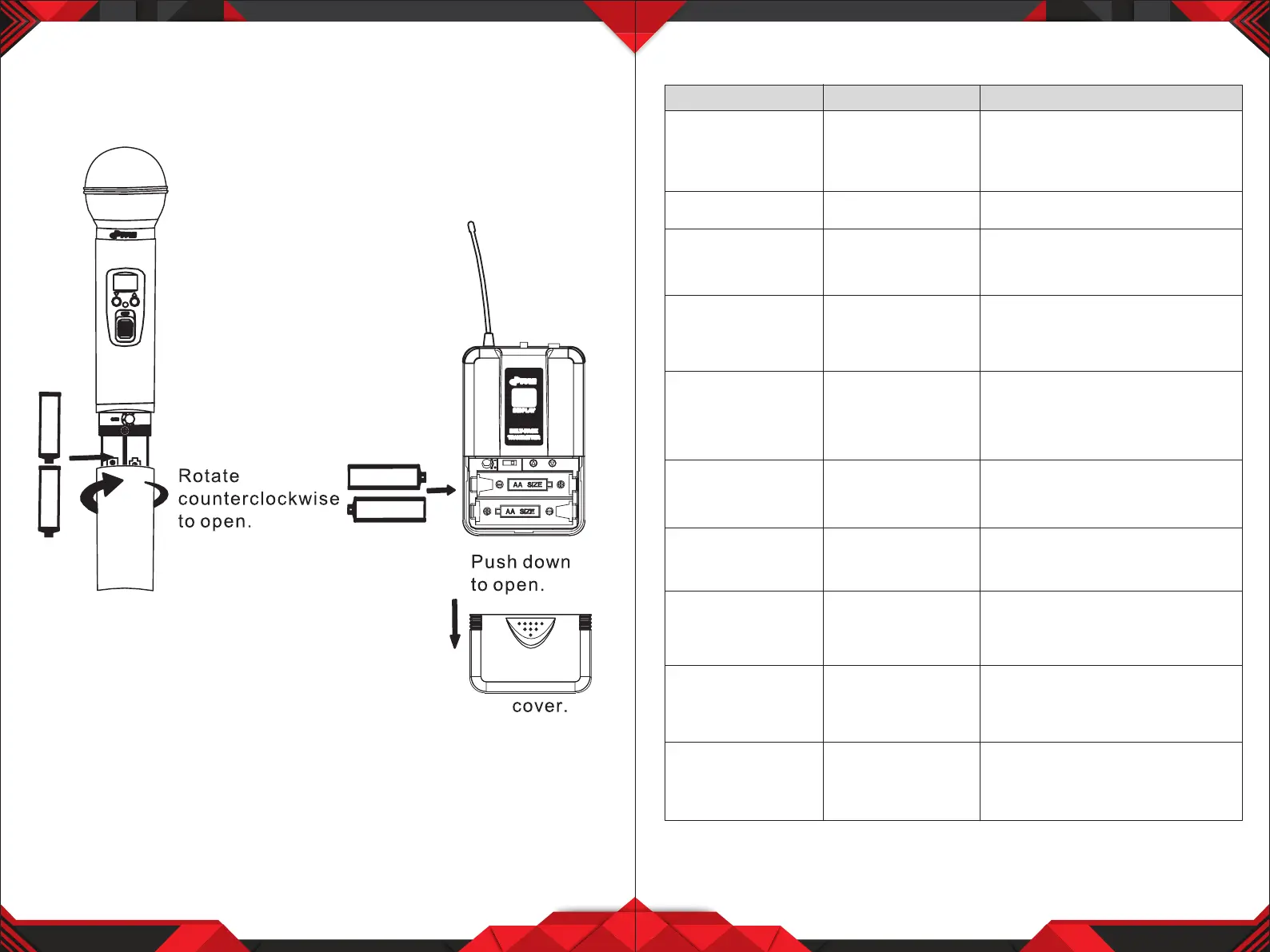 1. Transmitter Battery Installation: Push open the battery cover, insert the