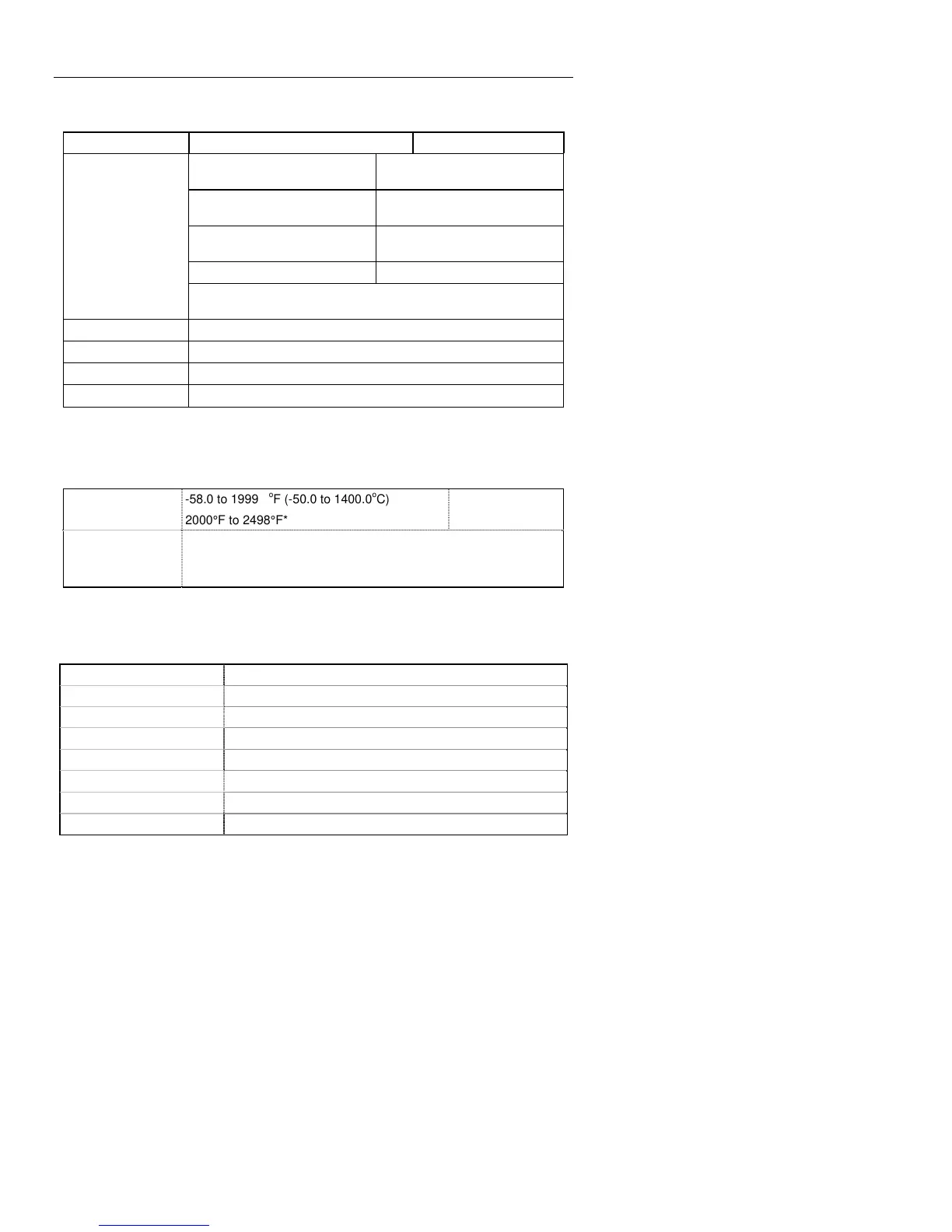 600F to 1562°F (316 to 850°C) ± (2.5%rdg + 5°F/2.5°C)
