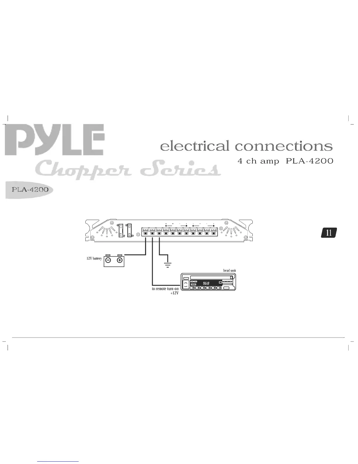 Pyle PLA-2200 - 2;4 Channel Input Connections (4-Channel Amplifier); 2-Channel Low Level Inputs; 4-Channel Low Level Inputs