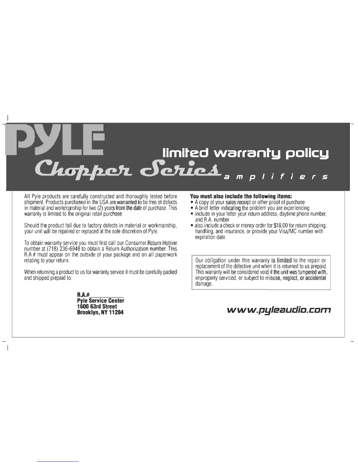 Pyle PLA-2200 - 4-Channel Amplifier Features and Specifications; PLA-4200 Features and Specifications